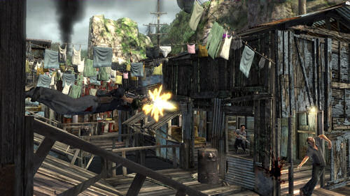 Xbox 360版のデモは、[b]日本のXbox Live マーケットプレイスでも配信[/b]されています(ちょっとだけ驚きでした)。治療やテキーラボムといったものは十字パッドに割り当てられ、使いたい方向を押せば技が発動(あるいは治療)します。動きをスローにするテキーラタイムは、ゲージ(体力ゲージの下のもの)がある限り発動時間が長くなります。ボタンを押しているだけスローになりますが、放せば通常の動作に戻り、任意に調整が可能。これを使えば、アクションが苦手なプレイヤーでも、そこそこ安心(?!)して遊べるのではないでしょうか。