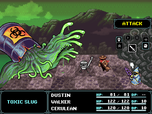 本作はSNES(欧米版スーパーファミコン)に影響を受けた、90年代JRPG風なターンベースRPGです。手足が生えたゴミ箱「Dustin Binsley」をはじめとした個性豊かなキャラクターや、プラットフォーマー的な縦方向への移動を要するステージデザインなどが特徴的です。