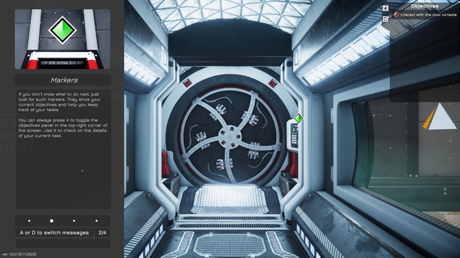 目が覚めるとプレイヤーはとある施設の扉前に立っていました。基本的な操作はWASDで移動、マウスで視点操作とアクションを行うことができます。