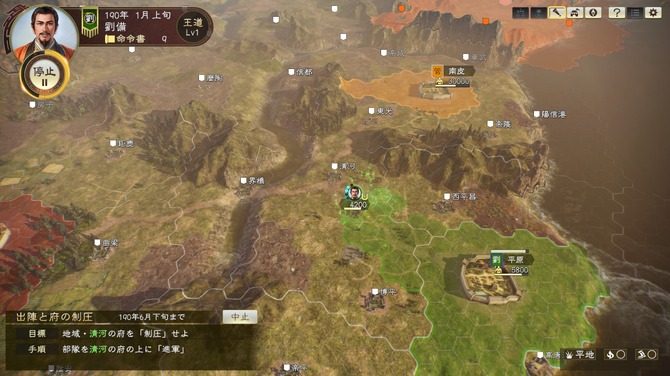 そういう訳で奇しくも本作は、筆者の好きな3作品すべての要素が取り入れられていることとなります。『三國志11』はともかく、『三國志VI』『三國志IX』は解像度が低く、現在のモニタでプレイするには多少厳しいものがあります。似たエッセンスを持つゲームを高解像度でプレイできるというのは嬉しいですね。まずは本作の特徴である「土地の塗り潰し」を見ていきましょう。