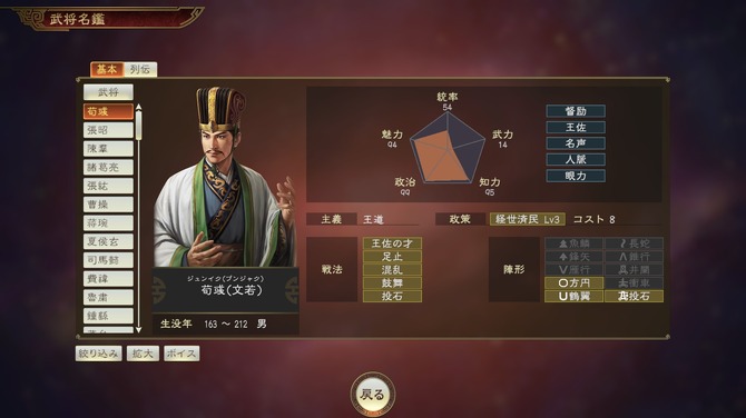筆者が『三國志VI』や『三國志IX』が好きな理由として、「武将の自主性」を重んじて作られている点が挙げられます。君主は武将の動き一つひとつを逐一指示するのではなく、「どこを攻めるか」などの大まかな命令を与え、後は武将の意思に任せるといった形になっています。