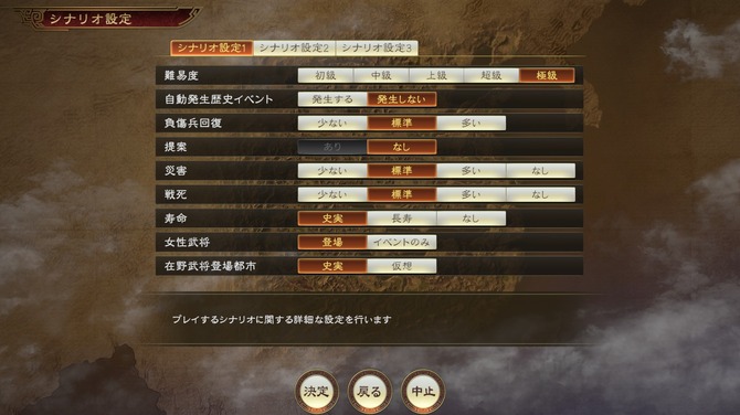 それと、本作は本体+PKを購入しただけでは完結せず、多数のDLCが存在します。シナリオや武将の追加ぐらいなら分かるのですが、ゲームの難易度(「超級」「極級」)や敵部隊の情報表示、一騎討ちや武将負傷の有無、各種編集機能まで有料コンテンツなのは正直どうかなとは思いました。本体やPKの価格自体が高いこともあり、「一騎討ちの有無」のような基本的な物は、最初からオプション選択可能でもいいような気がします(これら販売方法の問題については、筆者はゲーム評価には影響なしと判断しているので、今回のレビューの評価材料にはしていません)。