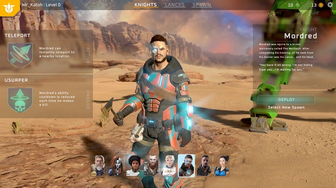なお、LanceとKnightは戦場でやられるたびに変更可能です。状況に応じた装備を選択するのが重要ですが、現在は今の装備を記憶するのみで、プリセットの設定などはできません。また、現在のビルドではサーバーに入ったときのみ装備変更可能なのも惜しいところ。現在は実装されていませんが、いずれはゲーム開始前にARMORYで変更も可能になるようです。