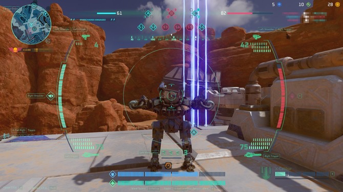 本作を実際にプレイしてまず感じるのは、とにかく機体の機動性が独特であるということ。「ダッシュはすぐにエネルギー切れ」「通常のジャンプでちょっとした段差を超えられない」「Eを押すと可能な"ロケットジャンプ"が空中制御できない」など、最初は戦場を思うように動くことすらままなりません。