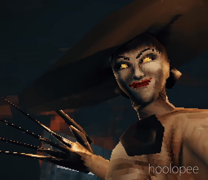 この映像は『バイオハザード ヴィレッジ』内に登場する複数の場面を初代PS風に再現したもの。ゲーム内のや登場人物が原作の雰囲気をそのままに、ローポリゴンや粗いテクスチャで描かれています。