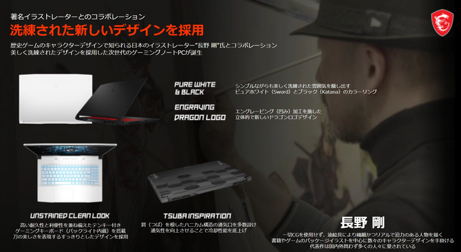 これらのモデルは今までのMSIノートPCとは違った、美術のエッセンスを取り入れたPCとしてデザインされているとのことです。
