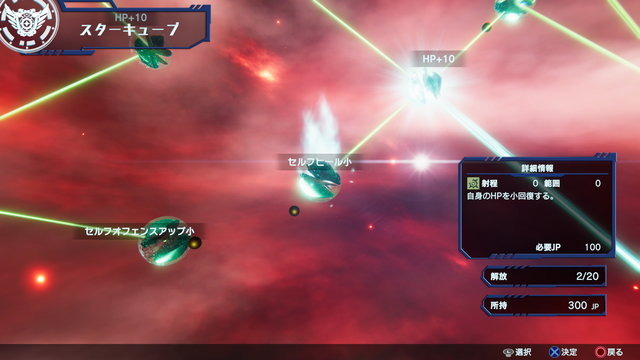 戦いで入手したジョブポイントを使ってスターキューブを解放し、スキルやアビリティを獲得することでキャラクターのパラメータがアップし、スキルを使えるようになります。