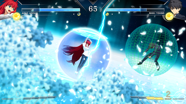 設置技や遠距離攻撃魔術で相手を圧倒し、機動力を活かした武術でたたみかけるトリッキーなオールラウンダー「蒼崎青子」は設置可能な飛び道具や、魔弾などの遠距離攻撃で相手の動きを制限しつつ、ヒットした一瞬の隙を逃さず追撃の遠距離攻撃や武術の近距離攻撃でたたみかけるバトルスタイルを得意とします。遠距離・近距離の多彩な技を持ち、状況に応じて使い分けて立ち回ることが可能な、トリッキーなオールラウンダーです。