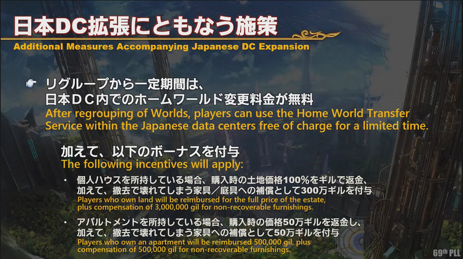 そして発表された新DC、「Meteor」は既存の各DCからいくつかのワールドが移動して構成される形に。新DCの追加、リグループのねらいはプレイヤー増加に伴う混雑緩和、ログイン可能人数引き上げのためであり、今年の7月頃を予定しているとのことです。こちらについてはコミュニティからも様々な意見が出され、現在の公式フォーラム等でもユーザーの議論が白熱している様子。DCリグループに伴い、所属するワールドの移転を行った際などの補償については後日改めてトピックスにて解説があるようです。