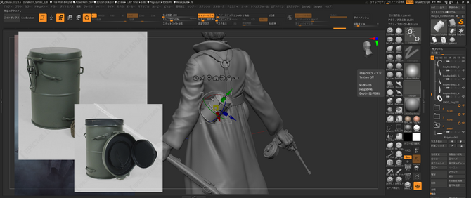 ちなみに、造形の技術的な話をすると、筆者は一度ダイナメッシュ状態(粘土のような状態)で荒く手を作ってから、Zリメッシャーでリメッシュ。その後マスクした場所を「Ctrl+W」でポリグループを分け、ギズモ3Dで細かく関節を動かしつつ握らせていきます。