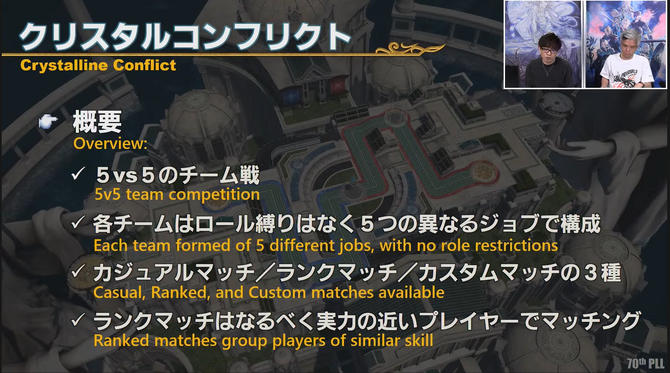 放送ではルールやマップを解説しながら、吉田氏と開発チームが実際に対戦。試合の制限時間は5分と短く、スピーディーな戦闘が繰り広げられていました。各ジョブごとに設定された専用の「リミットブレイク」もド派手で強力です。