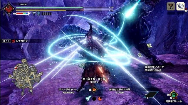 紹介動画では「チャージアックス」と「ヘビィボウガン」を使う2人のハンターが、ルナガロンと戦闘を行っています、中でも大注目されているのが、動画前半に登場するチャージアックスの使い手です。