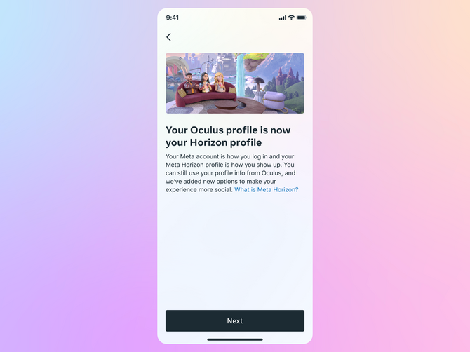 なお、Metaアカウント自体にソーシャルプロフィール要素は備わらず、新たに作成する「Meta Horizonプロフィール」にユーザーネームやアバターなどの情報が用意。既にOculusアカウントをFacebookアカウントと連携している場合は、Metaアカウントの設定処理中にFacebookアカウントを削除することで、紐づけの切り離しが可能とのことです。