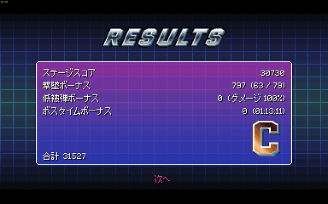 ボスを倒すと無事結果画面に移行し、スコア評価が行われます。撃墜ボーナスに惜しさを感じますし、更にスコアを詰めたい欲求などもあるのですが、次のステージ以降はプレイしてのお楽しみと言うことに。『スターフォックス』が好きだったり本作を期待している読者の皆さまには、ぜひ実際にプレイしてみていただきたいです。