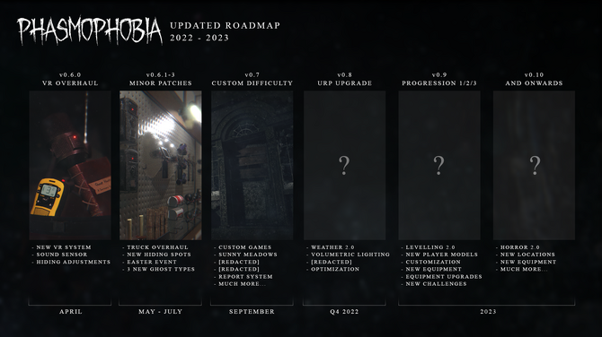 Kinetic Gamesは、幽霊調査Co-opホラー『Phasmophobia』の新しい開発ロードマップを公開しました。