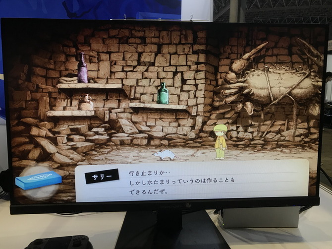 本作は幸田御魚氏による手描きのイラストレーションの世界を旅するADV。主に記憶をなくした少年の物語をプレイヤーが追いかけてゆくもので、今回の東京ゲームショウでも試遊ができました。そこにあったのは「世界に浸ろう。」というよりも「潜る」体験でした。
