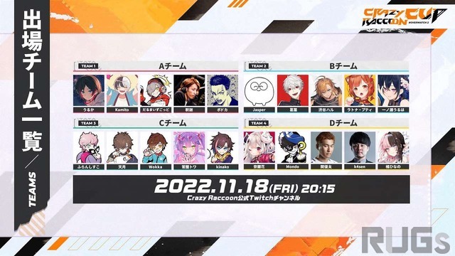 「第1回 Crazy Raccoon Cup Overwatch」出演者(プレスリリースより)