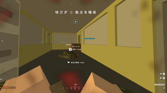 『BF』風の本作ですが、それとは違う要素も実装されています。本作では、ダメージを一定以上受けると出血することがあり、出来るだけ早く安全な場所で止血する必要があります。