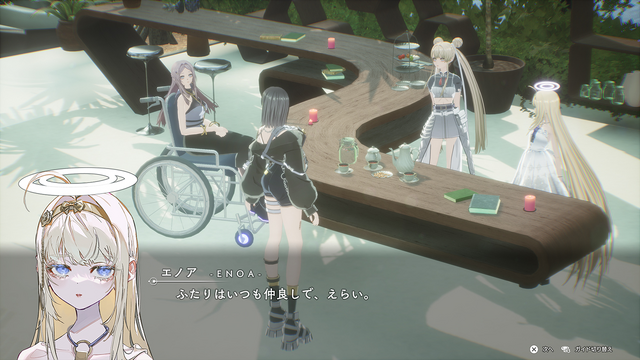 そんな彼女は、ヘイロー(注:宗教画などで人の頭の上に描かれる光状の円盤のこと。平たくいうと"天使の輪")のようなものを頭上に掲げるアンニュイな美少女・エノアの呼びかけで目を覚まします。