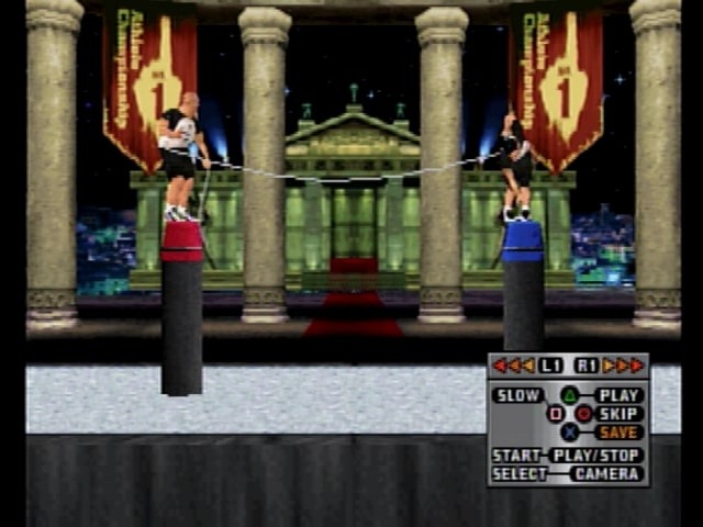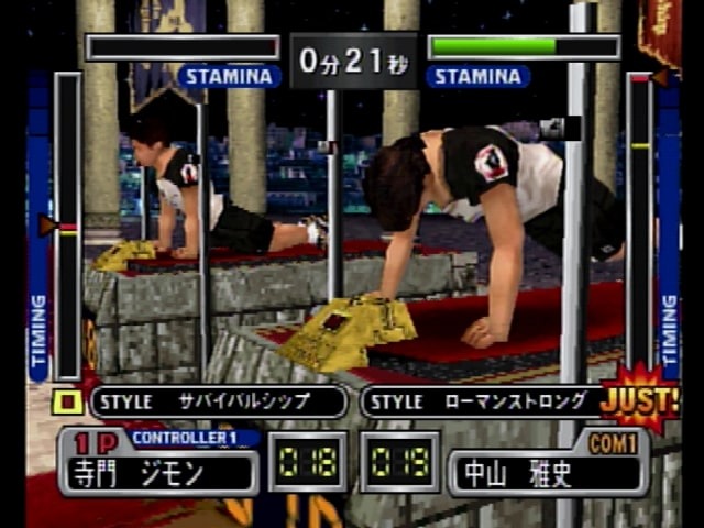 続いて家庭用機に登場した「筋肉番付」のゲームは、ゲームボーイカラー版から約一月後、1999年12月にプレイステーション向けに発売された『筋肉番付VOL.1 ~俺が最強の男だ!~』でした。ちなみに第1作から「VOL.1」とついている本シリーズ、2000年3月に「VOL.2」が、2000年12月には「VOL.3」が発売されています。