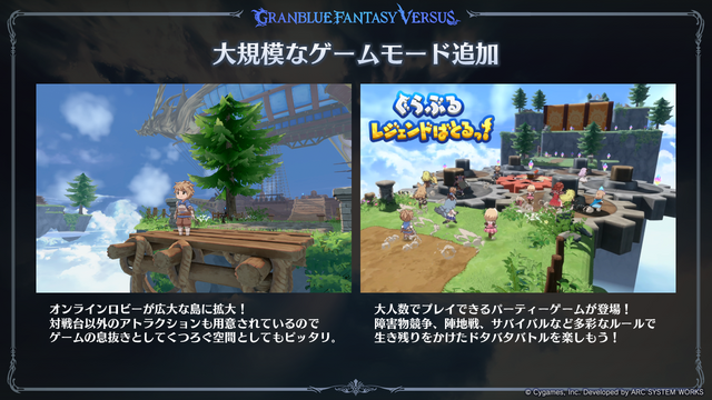 そして、前作で好評だったオンラインロビーも大幅進化!その舞台が広大な島に拡大したほか、大人数でワイワイ盛り上がれるパーティーゲーム「ぐらぶるレジェンドばとるっ!(ぐらばとっ!)」が追加されています。