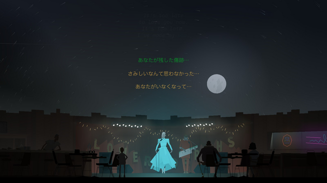 「スタイライズドレンダリング」された特徴的なグラフィック。ミュージシャンのライブでの歌詞も選べる、美しすぎるシーン。天井のテクスチャが剥がれていって野外ライブのようになるシーケンスは感動しました。詩情たっぷりの本作、ぜひとも読者のみなさまもその言葉を浴びてみてはいかがでしょうか。0号線への向こうへの旅は損はしない、絶対的な旅になることは間違いないです。