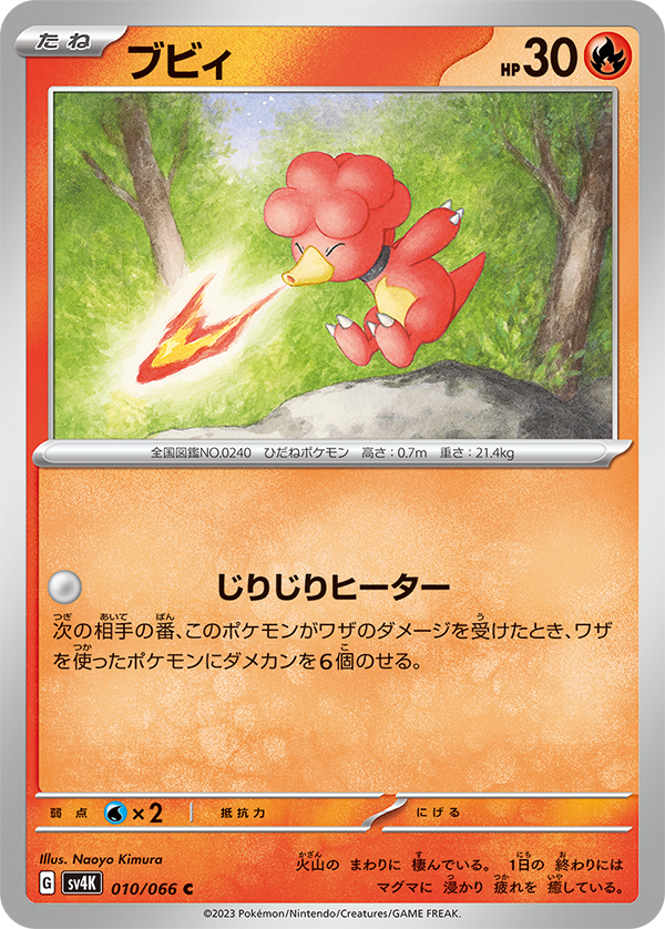 なお、カード左下のマークはそのカードが収録される商品を表しており、「古代の咆哮」の収録カードには「sv4K」、「未来の一閃」の収録カードには「sv4M」と記されています。