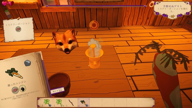 まずはキャラクターメイキングですが、ここで主人公の名前と種族、そしてペットの名前を決定します。最初はチュートリアルとして、材料の集め方や戦闘、そしてポーションの作り方などを学んでいきます。