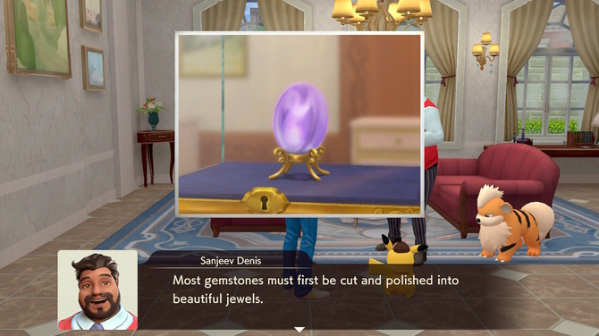 ピカチュウ達が最初に遭遇する事件はとある屋敷で発生した宝石の窃盗事件。従業員のひとりが怪我を負い、主人に尽くしてきた執事が疑いをかけられています。ミステリーの定番シチュエーションですね。英語ではやや難しそうな単語が並びますが、その大半はドラマでもよくあるミステリ用語なので、それさえ押さえておけば言っている内容は読み取れると思います。