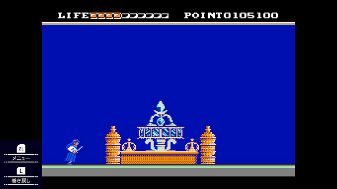 ここで活躍したのが、本コレクションに搭載されている「巻き戻し」機能です。この機能を使用すると、今から少し前の時間にゲームを戻すことができるので、ダメージを受けたときやジャンプに失敗したときなどに活用できます。この機能を駆使し、マニュアルをしっかり読み込むことで初代も少しずつ進められるようになっていきました。