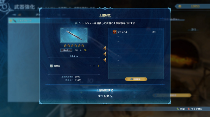 街にある鍛冶屋では、強化や上限解放など装備品に関するアップグレードも行えます。ストーリーが進めば新しい武器も作れるようになり、戦略は大きく広がっていきます。武器には「弱点攻撃特化」などの特性があり、上限解放で大きく強化もできるので、初期装備でも決して性能で大きく劣ることはありません。NPCにサポート向けの武器をもたせるなどの戦略もオススメです。