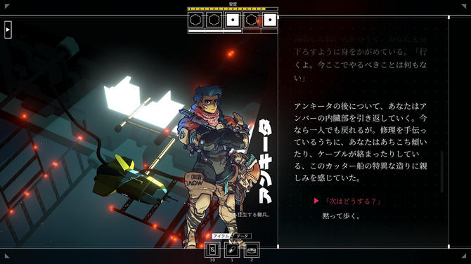 というのも本作は、任意のタイミングでセーブデータを小分けして、「別の選択肢」を確認することができません。しかも行動のたびに時間(クロック、サイクル)が進むので、これらは、プレイヤーのゲーム内における一挙手一投足に「やり直しができない」という重みを与えてくれます。