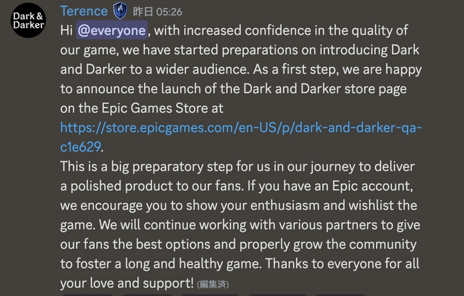 このたび、Discordにて開発者のTerence氏がEpic Gamesへストアページを公開したことを報告しました。本作をより多くのユーザーに紹介する準備の最初のステップであり、洗練された製品をファンに届けるための大きな準備段階とも記載。今後、さらなる展開を示唆しています。