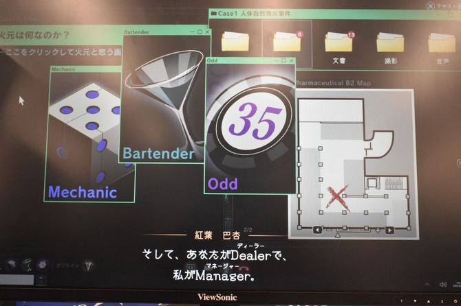 そして残念ながら、ここで試遊を終了。冒頭のADVパートも含めれば結構な時間ゲームをプレイしていましたが、これでもまだ序盤の序盤です。じっくり腰を据えて「人体自然発火事件」の真相にまで迫りたいところでしたが時間が足りませんでした。
