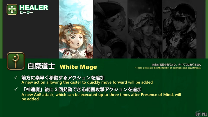 遠隔魔法DPSと同様に、ヒーラーもロールアクションの「迅速魔」のリキャストが40秒に短縮されます。白魔道士、学者、賢者は大きな変更がない一方、占星術師はカードの効果に変更があるなど、メカニクスに手が加えられたジョブも存在しています。
