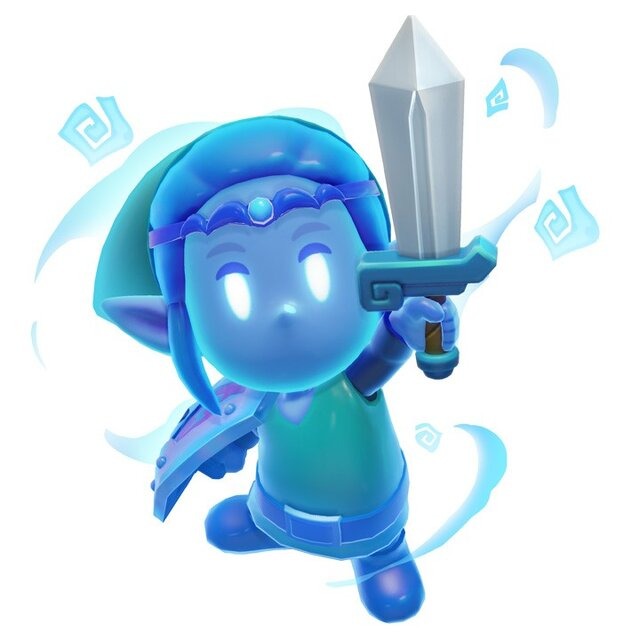 さらに、本作のゼルダ姫は「剣士」の姿に変身できます。無の世界で「ふしぎな剣」を拾うと、リンクのような勇者の衣をまとい剣で攻撃、盾で防御といった『ゼルダの伝説』シリーズらしいアクションを繰り広げるゼルダ姫に。