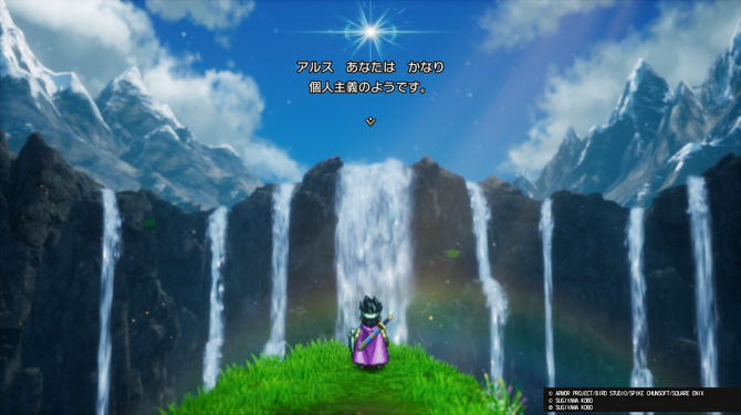 ゲーム開始時には、お馴染みの性格診断があります。これは複数の質問やケースに対してプレイヤーがどう答える、行動するかによって主人公の性格を決定するもの。性格によってステータスの成長が変化するのですが、筆者はこれまでの作品で何度やっても個人主義になり、今回のリメイクでも同様でした。