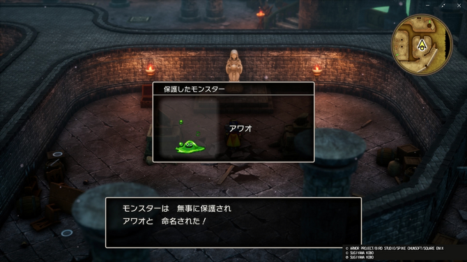 続いては新コンテンツ「モンスター・バトルロード」を体感してみます。ゲーム内では、さまざまな場所にいる“はぐれモンスター”を見つける必要があるのですが、今回の試遊では最初からスライムとホイミスライムが使用可能でした。