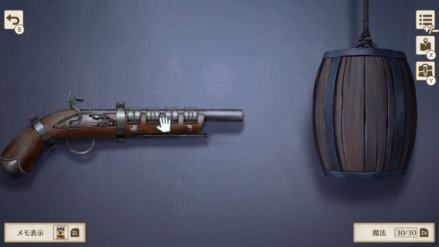 本作では、怪しいところを選択してお姫様を誘導することで、脱出の手がかりとなるアイテムや脱出のヒントを入手できます。入手したアイテムやヒントを手がかりに仕掛けを解き、脱出の糸口を見つけるのが基本的な流れです。