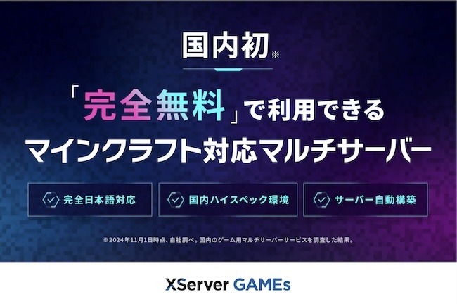 エックスサーバーは、ゲームサーバー専用サービス「XServer GAMEs」において、国内初となる『マインクラフト』の統合版・Java版に対応した完全無料のマルチプレイサーバーの提供を開始しました。