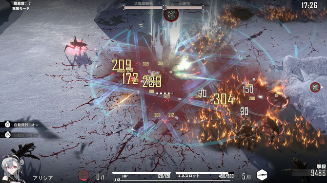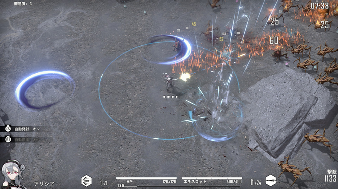 一度のストア削除を得て自社パブリッシングで復活した『ヘビーストームシャドウ:ふっかつ(HSS:Reload)』。いわゆる『Vampire Survivors』ライクな「多数の敵を倒しながらランダム強化してビルドを考える」という、基本的な要素はしっかり楽しめますし、ブーストや射撃リロードなど、メカ要素も組み込まれています。自動照準など、自分で操作する部分の比重を変更できるのも好印象です。