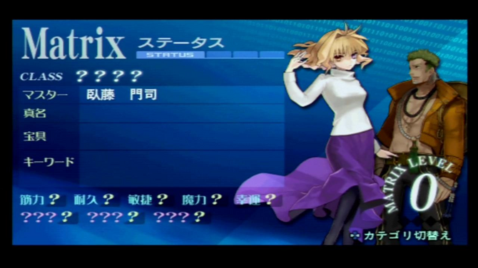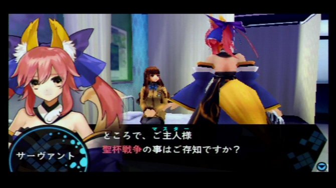 プレイヤーはこの主人公を操作しつつ、どこか『SN』の彼女と似た男装の少女「セイバー」、『SN』の…と呼ぶには少し複雑な事情がある「アーチャー」、コミカルな振る舞いが割烹着のあの人を彷彿させる半獣の女性「キャスター」から1騎を選択し、聖杯戦争を勝ち抜いていかなければいけません。
