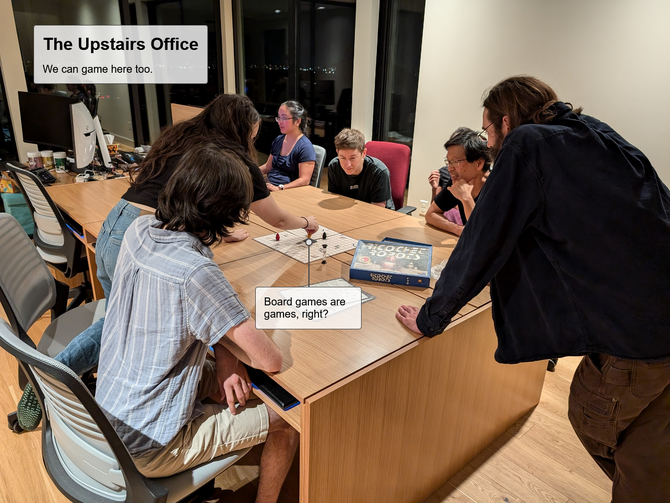 2階の会議室。ここではボードゲームをプレイできるようになっていますが……