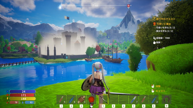 本作の戦闘は結構厳しく、ボス戦はちょっと油断したら簡単に倒されてしまいます。レベルアップでは力や敏捷、耐久など5つのステータスを上げられるほか、強力なスキルも習得できます。スキルはステータスアップや矢が2本になるといったパッシブだけでなく、攻撃や回復などの魔法を覚えることもできます。また、ステータスはいつでも振り直し可能です。