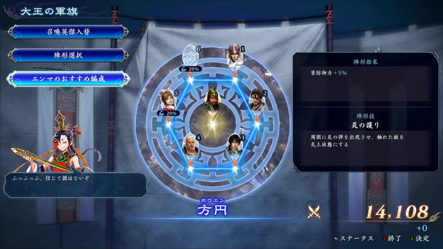 とはいえ、「そんなことを言われてもよくわからない」という方もいらっしゃると思います。そんなときはパーティー編成時に選択できる「エンマのおすすめ編成」を活用してください。パーティーの強さを示す「戦闘力」が最大値になる編成を自動的に組んでくれます。遊んでいくうちにやがて「エンマのおすすめ編成よりも、こちらの編成の方がよいのでは」と考えられるようになると思います。そこが、本作のローグライトの魅力にハマる瞬間です。ローグライトならではともいえる戦略性や試行錯誤を是非楽しんでいただきたいです。