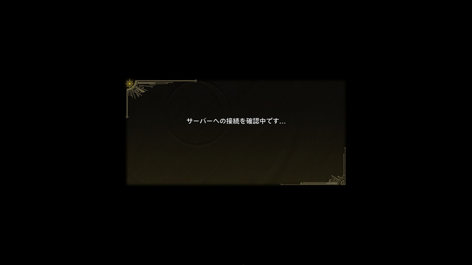 「シェーダーコンパイル」完了後は、セーブデータの作成や表示言語の設定などを行うことに。その後「サーバーへの接続を確認中です...」という、ログイン戦争が起きるならここだろうと思われる画面が表示されました。