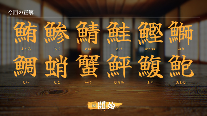 SushiCupに刻まれたKanjiがすべてお題のKanjiであれば「良し」。お茶を飲んで一息つこう。