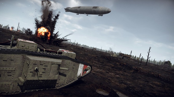 陸海空での熾烈な戦闘を体験できるMMOコンバットシミュレーションである本作。今回のイベントは第一次世界大戦中のフランドル西部戦線を舞台としたもので、史上初の戦車に改良を重ねて投入された「マーク V」の操縦や各国の複葉戦闘機でのドッグファイト、そして巨大爆撃飛行船「ツェッペリン」での地上制圧といった臨場感あふれる体験が楽しめます。