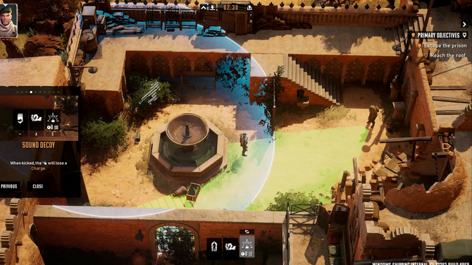 プレスツアーでは、いくつかのミッションでのゲームプレイを通じてゲームの遊び方や特徴が紹介されました。最初のミッションでは、上官への暴力事件で投獄中の「グリーンベレー」をスカウトすべく、サッパーがエジプトにある英国軍の前哨基地へ向かいます。