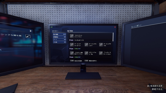 まずPCでストアを確認します。「バール」や「ヘアピン」など、この稼業で使えそうなアイテムがいくつも並んでいます。ではこの「シンプルな鍵開けセット」をいただきましょう。